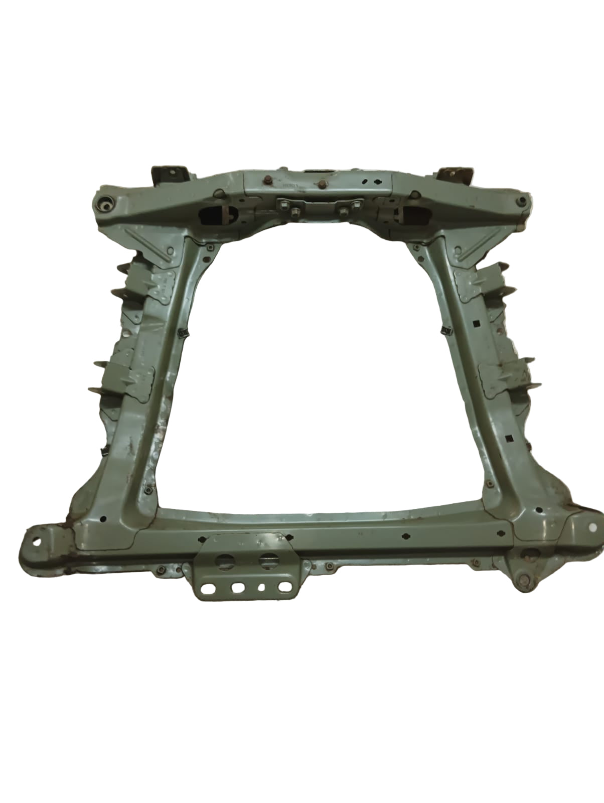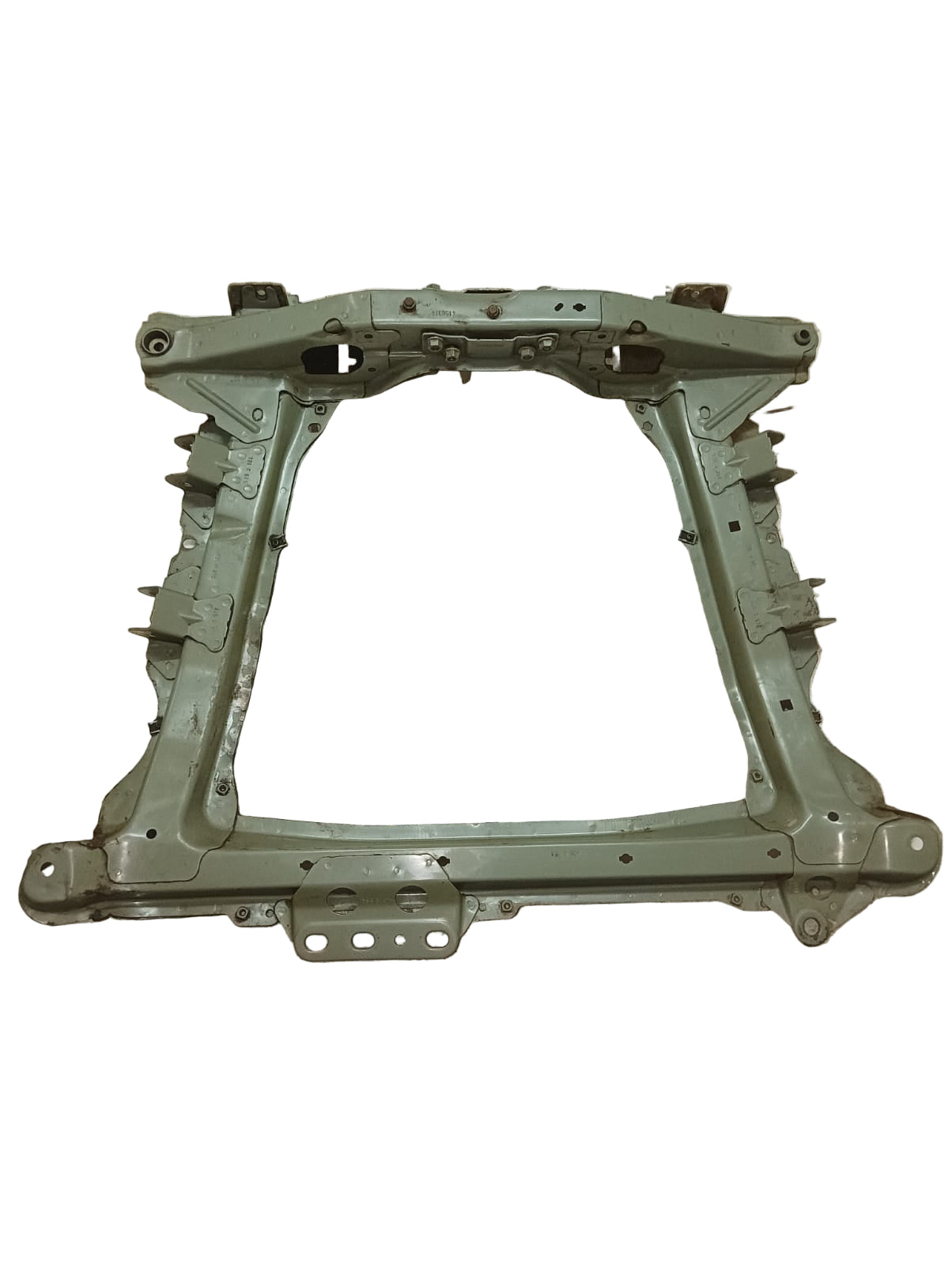 Fabricada en acero de alta resistencia, la cuna asegura rigidez estructural, estabilidad y un comportamiento firme en carretera. Su función es absorber cargas, mantener la geometría correcta de suspensión y brindar una base sólida para el funcionamiento del sistema de dirección y el conjunto motriz.