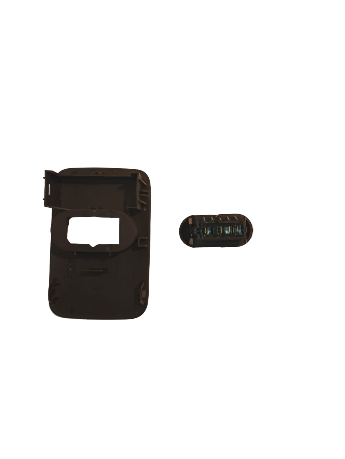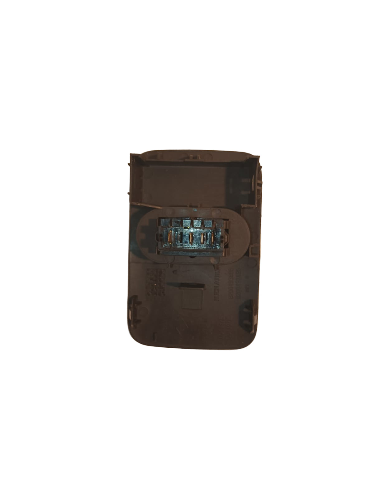 El switch de desempañador trasero del Renault Clio 2007 es el botón que activa el sistema eléctrico encargado de calentar la luneta trasera para eliminar el empañamiento. En este caso, viene acompañado del bisel, que es el marco plástico que rodea y sostiene el interruptor dentro del tablero.